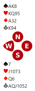 Slik det satt var det mulig å bete 6 hjerter, men ikke 6 kløver.