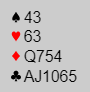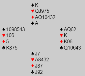 Fra vest kom hjerter knekt i utspill, og hele spillet så slik ut: