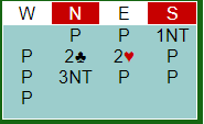 Ved det andre bordet valgte Håkon Kippe å åpne med 1NT med øst sine kort. Da ble det annerledes. Vest meldte 2 hjerter, overføring til spar.