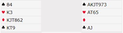 Hvis vest får en slik sleminvitt over 2 hjerter har han sånn midt i mellom, 16 poeng og relativt fine kort. Så...
