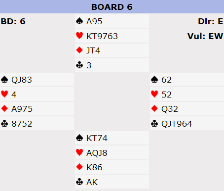 Ved det andre bordet ble nord spillefører, og kløver dame ble utspillet. Da ble det litt for vanskelig for spillefører som endte med å gå en bet, 14 IMP til lag ZIGGY. Men det ble lag ASHTON som til slutt vant finalen etter en sterk avslutning av kampen.