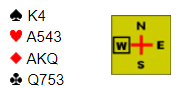 La oss si du spiller ut en stor ruter. Da får du se disse kortene på bordet (nord):