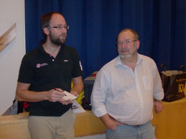 Anders Svare og Oddbjørn Dyrkorn fra Namsos BK tok en suveren seier i Øyna Adventscup som ble arrangert på Røra Samfunnshus sist lørdag. På andre plass fulgte verdalingene Geir Enge og Knut Jonny Tuseth, mens Ove Reidar Holmen og Alexander Flakstad tok den siste pallplassen. Videre fulgte juniorene Kristoffer Hegge og Tor Eivind Grude på fjerdeplass, mens turneringsleder Tormod Daling tok den siste premien sammen med Arnstein Nymoen. De tre beste parene i Øyna Adventscup. Det ble en trivelig førjulsturnering der arrangøren Inderøy BK hadde full kontroll med gjennomføringen. Tormod Daling gjorde en god jobb med det tekniske og likeså Pål Dahl som hadde ansvaret for kjøkkenet og det praktiske. Nevner ellers at Øyna Gårdsmat hadde sponset en del spurtpremier. Tormod Daling og Pål Dahl med full kontroll under adventscupen Dette var en kretsturnering der arrangøren la seg på lav startkontingent for å prøve å få¨med den vanlige klubbspiller. Kun 20 par stilte til start og det er vel et minimum for i det hele tatt å få avviklet turnering. Det ser ut til at det for tiden er liten interesse for parturneringene i vår krets, så hva som skal til for å få flere med vet ikke jeg. Oppfordrer herved medlemmene med gode ideer og innspill om å si sin mening her slik at vi kan få til en diskusjon om dette her på hjemmesiden. Resultater her