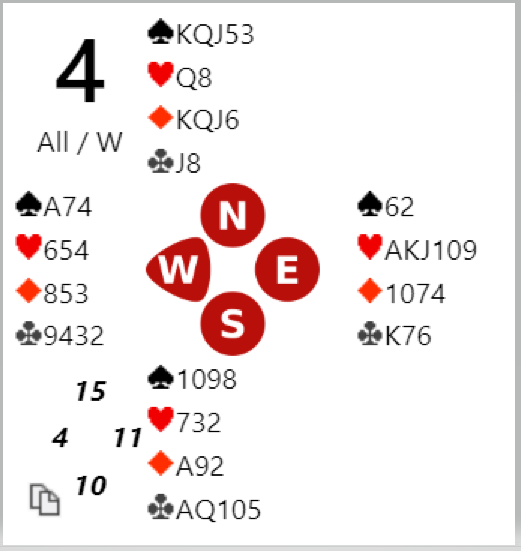 Du sitter nord, er i andre hånd med alle i sonen. Vest passer og det er din tur. Åpner du med 1 spar, eller er du av den typen spillere som liker grandåpninger litt på siden av det foreskrevne?