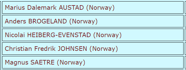 For dette laget er Lars Eide Non Playing Captian (NPC) og Kristian Ellingsen coach. Ellingsen er coach også for damelaget og NPC for laget i klasse U-16, så han får det vel veldig travelt denne uken.