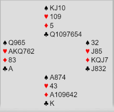 I syv av 24 kamper vant Ø/V utgang, resten av N/S spillerne fant motspillet og betet den vanligste kontrakten med disse kortene, 4 hjerter.