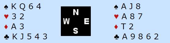 Med ruter ut er det bet i 3NT, Ø/V har bare åtte toppstikk og må innom kløveren. Men motspillet må finnes om det kommer hjerter ut. Spillefører må lasjere den første hjerteren. Da betes 3NT om det skiftes til ruter i andre stikk.