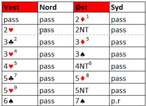 Etter styrkekastet i ruter tok øst for ruter konge, og for å gjøre det enkelt tok han også for kløver ess før han fortsatte med ruter - en bet.