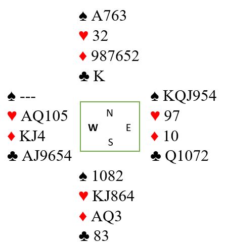 BINGO, kløver konge kom deisende fra nord under esset! Da var det bare å spille seg over til øst i trumf og forsyne seg med fem sparstikk som ga avkast for alle ruterne og to hjertere. Det gjenstod "kun" å ta en ubesværet hjerterfinesse med damen.