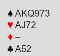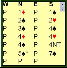 Det er nok slem her, og kanskje storeslem. I meldesituasjonen jeg skisserte sa mange 3 spar over 3 kløver, en melding som virker ganske logisk. Og det er vel ikke alle som har den avtalen at nords 3 kløver må være femkorts farge i denne situasjonen, for hva gjør man med 1-3-5-3 uten hjererstopper? Til det kan det nevnes at en bra variant er at løft av fjerde farge fra to-trinnet til tre-trinnet viser akkurat det, ingen ting å fortelle om. Altså, hvis 2 hjerter - fjerde farge - løftes til 3 hjerter viser det at han ikke har sparstøtte, ikke hjerterhold og ikke ekstra lengde verken i ruter eller kløver.