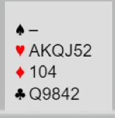 Vi tar med et spill til fra kampen mellom Norge og Manchester i mellomjulen. Norge vant kampen klart. Spesielt i spill hvor det var utgang eller slem vurderte de norske parene bedre. Her er et spill hvor du kan prøve deg med syd sine kort. Nord var giver og Ø/V i sonen.