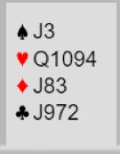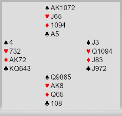 Fortsatt var det mulig å tape fire stikk i minorfargene. Merk at om spillefører går på ruteren selv er det tre tapere med denne kombinasjonen. Hvis for eksempel tieren spilles dekker ikke øst den første, og vest vinner med en topphonnør. Hvis han har frikort må spillefører etterpå løse 9-x i ruter mot Q-x, og det går ikke. Spilles nieren dekker øst og ruter 8 blir en vinner i fargens tredje runde. Og spilles liten fra nord med 2-2 gjenværende rutere legger øst åtteren. Da blir også tre rutertapere samt en uungåelig kløvertaper – fire stikk til forsvaret.