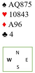 I moderne bridge åpner mange med slikt, tofargehender med minst 5-4. Det har blitt ganske vanlig å åpne med alle 11 poengere om det ikke er balansert hånd, og noen 10 poengere også om fargene er bra. Det er antagelig mest å hente strategisk med tynne åpningsmeldinger om man har begge majorfargene. Her er imidlertid ikke hjerterfargen noe å skryte av, men det er begge major, og hånden ser ganske ok ut med to ess og en singelton. Det er uansett ingen garantier når det gjelder slikt. Hva som oftere blir rett eller galt når det gjelder slike avgjørelser er jeg på ingen måte sikker på. Et faremoment med veldig tynne åpningsmeldinger er at vi kanskje ikke har tilpasning, men makker har bra kort, og så vi havner i 3NT med alt for lite HP til sammen. Da er det imidlertid fortsatt muligheter om fargene er bra og potensielt stikkgivende.