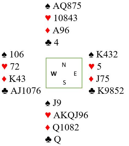 Slik det faktisk var, med spar konge bak måtte sparen gi fire stikk og gi tre ruteravkast for å få elleve stikk.