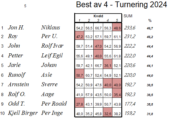 Gratulerer til Jon H. og Niklaus som vinner av 4-beste turneringen 2024!