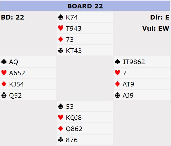 Der lederlaget satt Ø/V spilte de 4 spar som lett ble vunnet. De som måtte vinne enda flere usannsynlige svingspill meldte 6 spar.