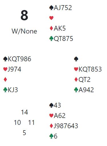 Idet vest ble presset på alle ruterstikkene kunne han kaste sine spar, men så burde han nok kastet en kløverhonnør da han satt igjen med: