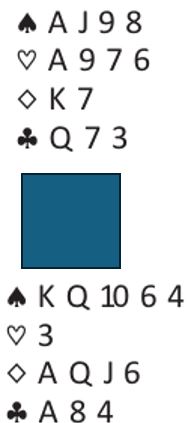 Syd har havnet I 6 spar som ser helenkel ut, ja det kan se ut som om de burde ha meldt storeslem.