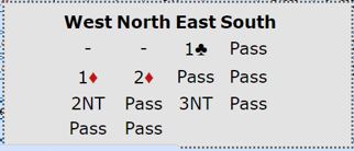 Som i forrige innlegg var dette også et sånt spill hvor det handlet om hvilken utgang, NT eller majorkontrakt. Her ble det altså en håpløs 3NT-kontrakt.