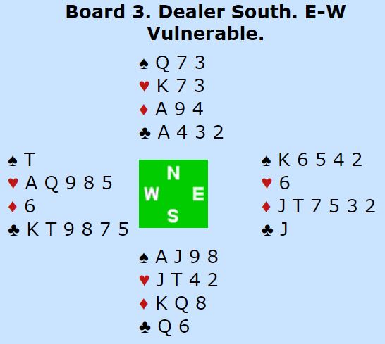 Superveteranene Bompis-Levy spilte som N/S 3NT og fikk ti stikk, et normalt resultat.