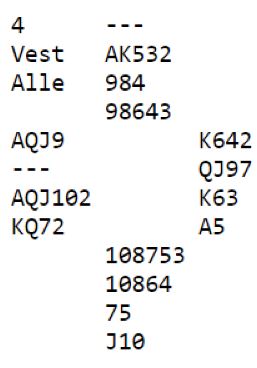 P - 1R (?) - D - 2R (?) P - P (?) - 4H - P P - 4S (?) - D (?) Pass rundt.