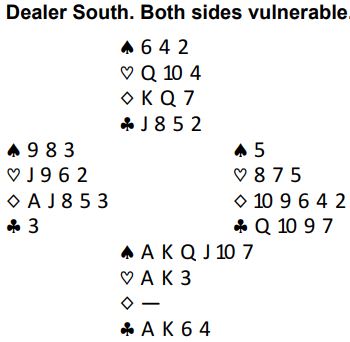 Spillet ser nokså uinteressant ut, for om kløveren sitter 3-2, eller damen sitter singel, eller vest har fire kløvere er det enkelt å vinne tolv stikk. Det blir kun en kløvertaper (eller ingen). Det kan til og med bli tretten stikk. Men idet A-K i kløver spilles viser det seg at øst startet med kløver Q-10-9-7 og følgelig har to stoppere i fargen.