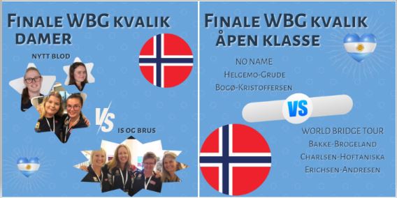 På søndag spilles finalene i den norske kvalifiseringen til Bridge-OL (World Bridge Games) i ÅPEN KLASSE og DAMEKLASSEN. Over 48 spill skal det avgjøres hvem som får representere Norge i Buenos Aires til høsten.
