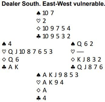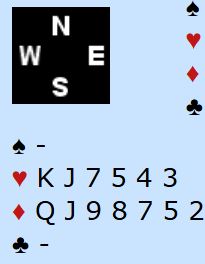 Spørsmål: Tror du noen av de som satt på nords plass og hørte 2 hjerter i åpning fra syd - og selv satt med A-Q tredje i hjerter og ruter konge dobbel - hadde fantasi til å gjette riktig på hva høyeste mulige kontrakt er?