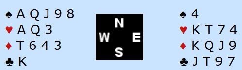 Det er som så ofte vanskelig å vite hva som er beste utspill her. Øst har meldt 1 spar, men behøver jo ikke ha så god spar. Kanskje kan et aggressivt spar konge utspill være tingen? Da «ser» nord to motspillstikk, og kanskje har makker spar knekt eller ess også. I så fall er spar konge et glimrende utspill. På den annen side, både ruter og kløver kan være bedre utspill.