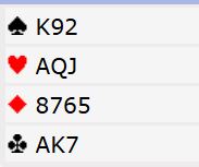 Vel, det kunne blitt rett, men ikke når de har sånn «meldediare» at de må åpne med hva som helst og noen ganger har bra eller spillesterke kort. For slik så hele spillet ut: