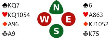 Det er 14 HP så mange åpner vel ganske automatisk med 1 hjerter. Hvis makkeren da viser en limit-raise (10-12) med trekorts trumfstøtte går vel nord i utgang på med sine 14 selv om det er en balansert hånd?