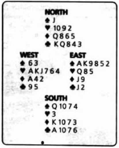 Det er egentlig ikke noen komplisert analyse i dette spillet. Hvis kløveren ordner seg er det tolv stikk. Det gjør den veldig ofte, 2-1 sits er jo ikke noe problem. Og om en av motspillerne har alle de tre uteværende kløverne går det også bra om det startes med honnør fra riktig side slik at det oppdages at en kan ta en markert finesse gjennom den motspilleren som har damen tredje. Men sitter det 3-0 og en legger ned feil honnør blir det bet i slemmen!