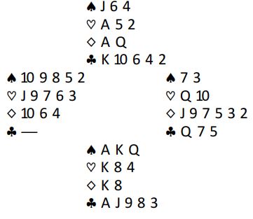 Ved det ene bordet i den nevnte lagkampen dengte spillefører ned kløver ess etter å ha vunnet det første stikket på hånden. Da kunne ikke kontrakten vinnes lenger siden det satt slik: