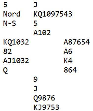 Vinnerlagets nord spilte altså 4 spar og fikk også ruter ut fra øst til kongen og esset. Spillefører tok to kjappe kløveravkast på de to godspilte ruterstikkene. Så trumfesset og mer trumf. Senere tok han dobbelfinesse i hjerter. Da den fargen ga kun en taper ble det elleve stikk, KAPLAN +650.