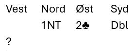 Vests pass er hårreisende, han har en grei 2 hjertermelding (eventuelt redobler siden han har tokorts spar også). De kan jo bli doblet i 2 hjerter eller 2 spar også, men det blir neppe så forferdelig galt. Forferdelig galt ble det i 2 kløver doblet...