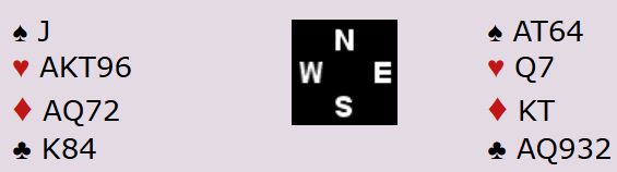 Ved begge bord åpnet øst med 1NT som er helt greit. Norge klarte imidlertid ikke komme seg høyere enn i utgang.