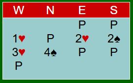 Kontrakten ble 4 spar ved begge bord. Det norske paret meldte altså en utgang de hadde håp om å vinne etter at begge i makkerparet hadde passet først!