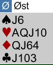 Østs kort ser nesten ikke ut som en åpning. Undertegnede er ikke tilhenger av tynne åpninger med flate, balanserte hender og bare 11 hp. Dette er dog 12hp selv om det kanskje nesten ikke ser sånn ut. Og med 12 ville i alle fall jeg åpnet. Med 1 ruter...
