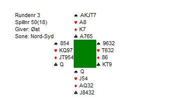 For øvrig ble det kun meldt slem ved to bord (i samme kamp), og en av spilleførerene gikk beit! Som den observante leser ser, står lilleslem både i kløver og spar uavhengig av utspill.